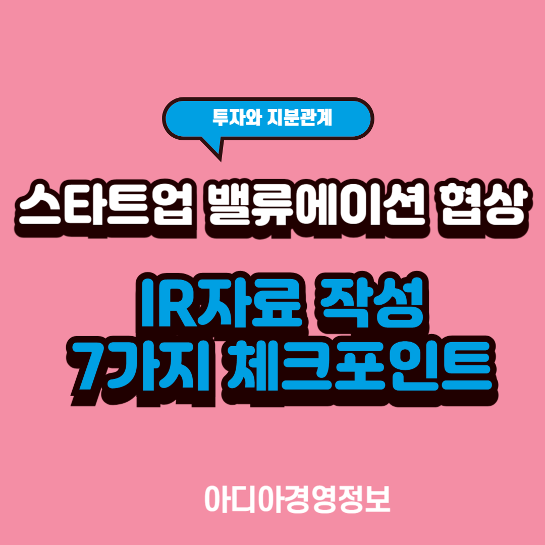 효과적인 IR 자료는 단순히 회사 소개서가 아닌, 투자자와의 신뢰를 구축하고 기업 가치를 명확하게 전달하는 도구입니다. 위 7가지 체크포인트를 꼼꼼히 확인하여 설득력 있는 IR 자료를 준비한다면, 밸류에이션 협상에서 더 유리한 위치를 선점할 수 있을 것입니다.
