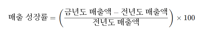 매출 성장률은 기업의 매출액이 이전 기간보다 얼마나 증가했는지를 나타냅니다.