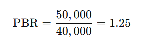해석: 기업 F의 주가는 자산 대비 1.25배로 거래되고 있습니다. 이는 시장에서 기업이 자산 가치보다 약간 높게 평가받고 있음을 나타냅니다.